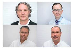 Die ausgezeichneten Ärzte: Dr. med. Rainer Kirchhefer, Chefarzt des Zentrums für seelische Gesundheit (o.l.), - Dr. med. Christian Karl Brinkmann, Chefarzt der Klinik für Augenheilkunde (o.r.), Dr. med. Patrick Ziem, Chefarzt der Klinik für Urologie (u.l.), - Prof. Dr. med. Dipl. oec. med. Jens-Peter Keil, Chefarzt der Klinik für Geriatrie, Rehabilitation und Palliativmedizin (u.r.)