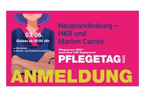 In diesem Jahr steht der Pflegetag unter dem Motto "Pflegemesse NEXT - Inspiration trifft Engagement"! Interessante Workshops, die Messe- und Industrieausstellung, kurze Beiträge der Firmen auf der Messe sowie das "Grüne Sofa" mit ausgewählten Gästen zu interessanten Themen erwarten die Teilnehmer in diesem Jahr. Der Pflegetag, der von verschiedenen Einrichtungen, sozialen Trägern und dem Dietrich-Bonhoeffer-Klinikum gemeinsam organisiert wird, findet am 3. Juni im HKB und im Marien Carrée statt. Anmeldungen sind ab 17. April bis zum 22. Mai möglich. Im nebenstehenden Flyer finden Sie alle weiteren Informationen.