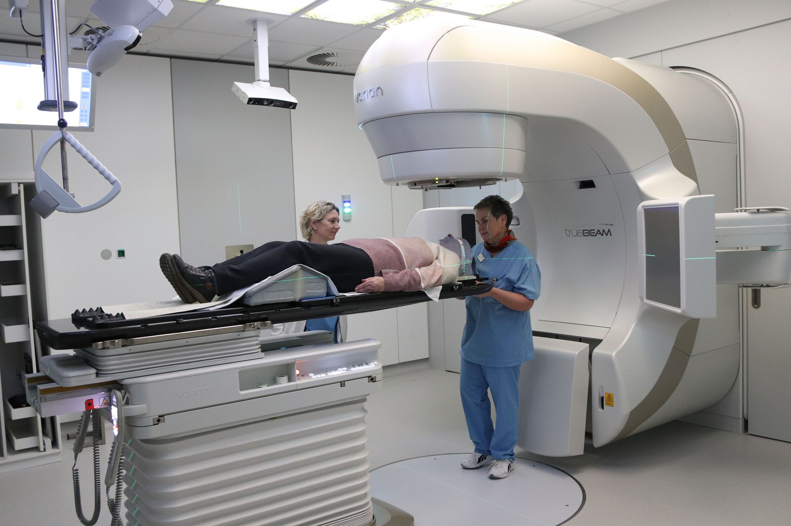 Eine Patientin wird am neuen stereotaktischen Beschleuniger für die Bestrahlung vorbereitet. Foto: DBK
